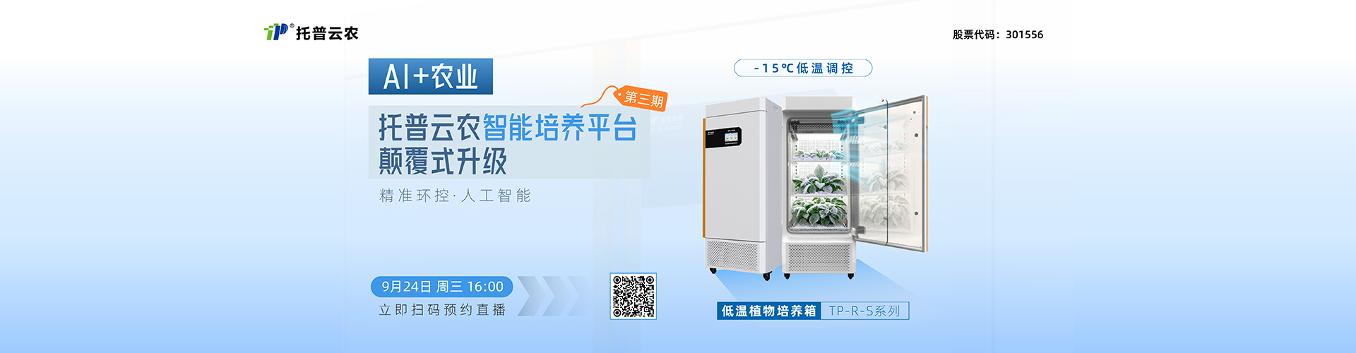 浙江托普云農科技股份有限公司專業生產環控型植物生長表型分析系統、環控型植物活體影像分析儀、可調光譜植物培養箱、低溫植物培養箱、智能人工氣候箱、智能光照培養箱、生化培養箱、霉菌培養箱、恒溫恒濕箱等實驗設備及種質資源庫建設、人工氣候室建設、植物工廠解決方案等,是專業的人工環境解決方案供應商。